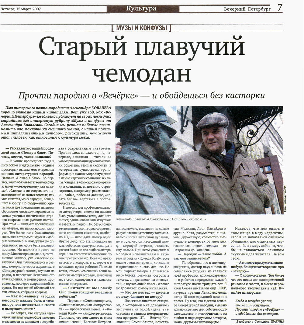 Интервью газете «Вечерний Петербург»...